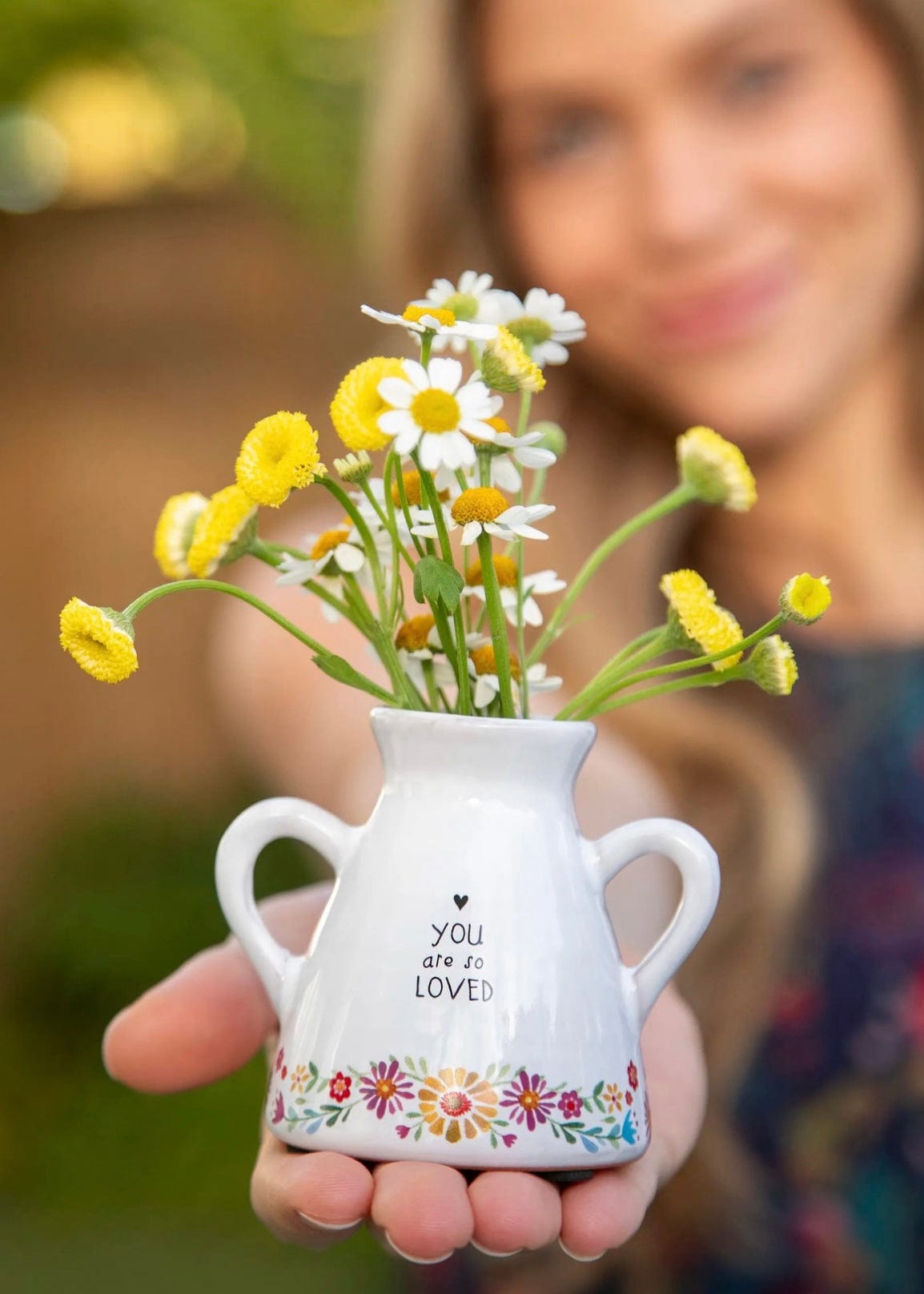 This artisan bud vase is a sweet gift for someone special. With a heartfelt message of "You Are So Loved" etched on the vase, it's the perfect way to show your love. The adorable size and quirky design make it too fun to resist. (Plus, it's a great way to brighten up any room!)