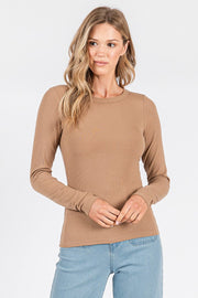 Stay comfortable and stylish with the Best Long Sleeve Basic in Mocha. Crafted from a soft micro rib blend of 95% rayon and 5% spandex, this top offers a flattering stretch and a cozy fit. Its classic round neck and long sleeves make it a versatile wardrobe staple perfect for layering or wearing on its own. Enjoy everyday ease with a touch of sleek sophistication.