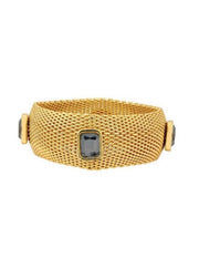 Elevate your style with our luxurious Golden Bracelet Cuff. Featuring a sophisticated inch-wide golden mesh design, and adorned with a striking black gemstone, this bracelet is the perfect accessory for any occasion. Whether stacked or worn alone, it adds a touch of elegance and exclusivity to any outfit.