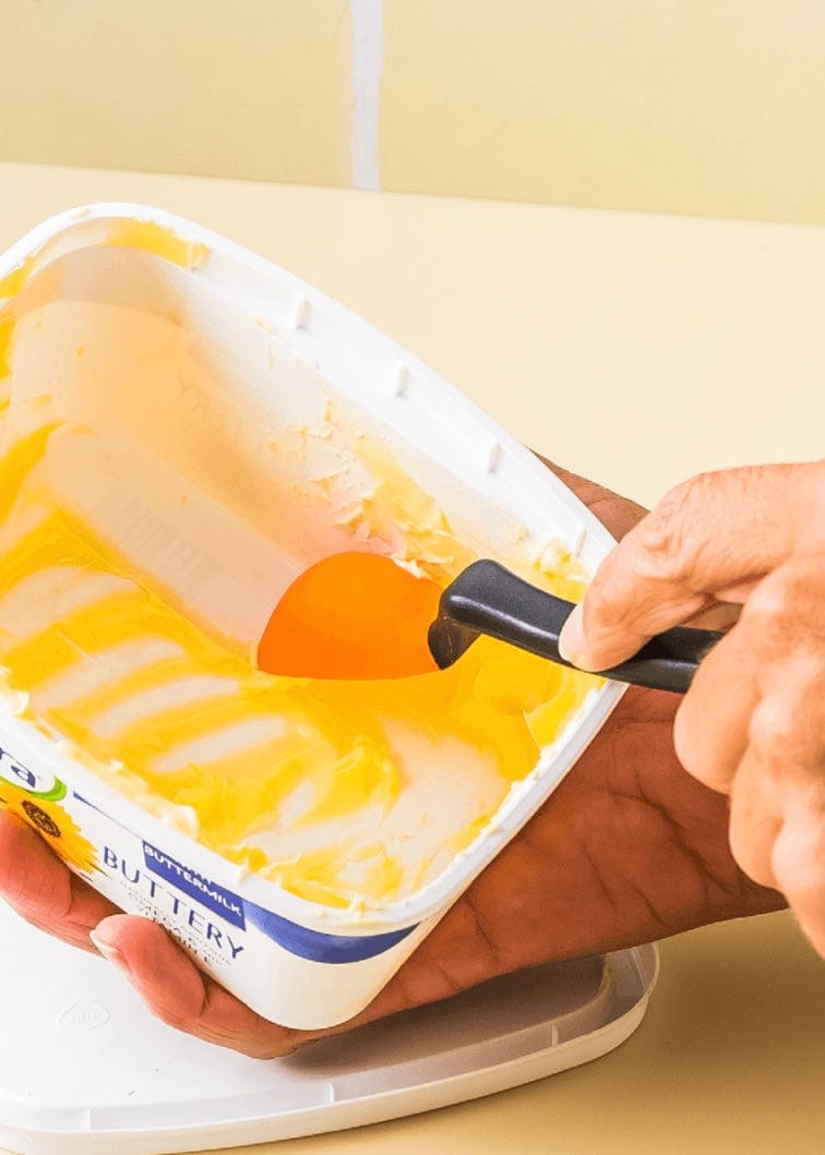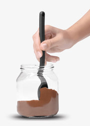 The Mini Supoon Easy Rest Spoon is the perfect kitchen tool for all your scraping, serving, and cooking needs. Featuring a flat squeegee tip and flexible scraping sides, it effortlessly scrapes every last bit out of jars and containers. Its unique design allows it to sit upright, making it ideal for serving dips and tapas. Upgrade your cooking game with this one teaspoon version of our renowned Supoon.