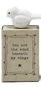 Cute and tiny! This cute little ceramic bird is about the size of your thumb and is housed in this little match box. The perfect addition to any gift and certain to bring a smile and even an "awwwww!"