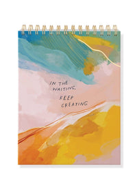 Wrapped in textured paper with gold foil accents and the words "In the Waiting, Keep Creating".
